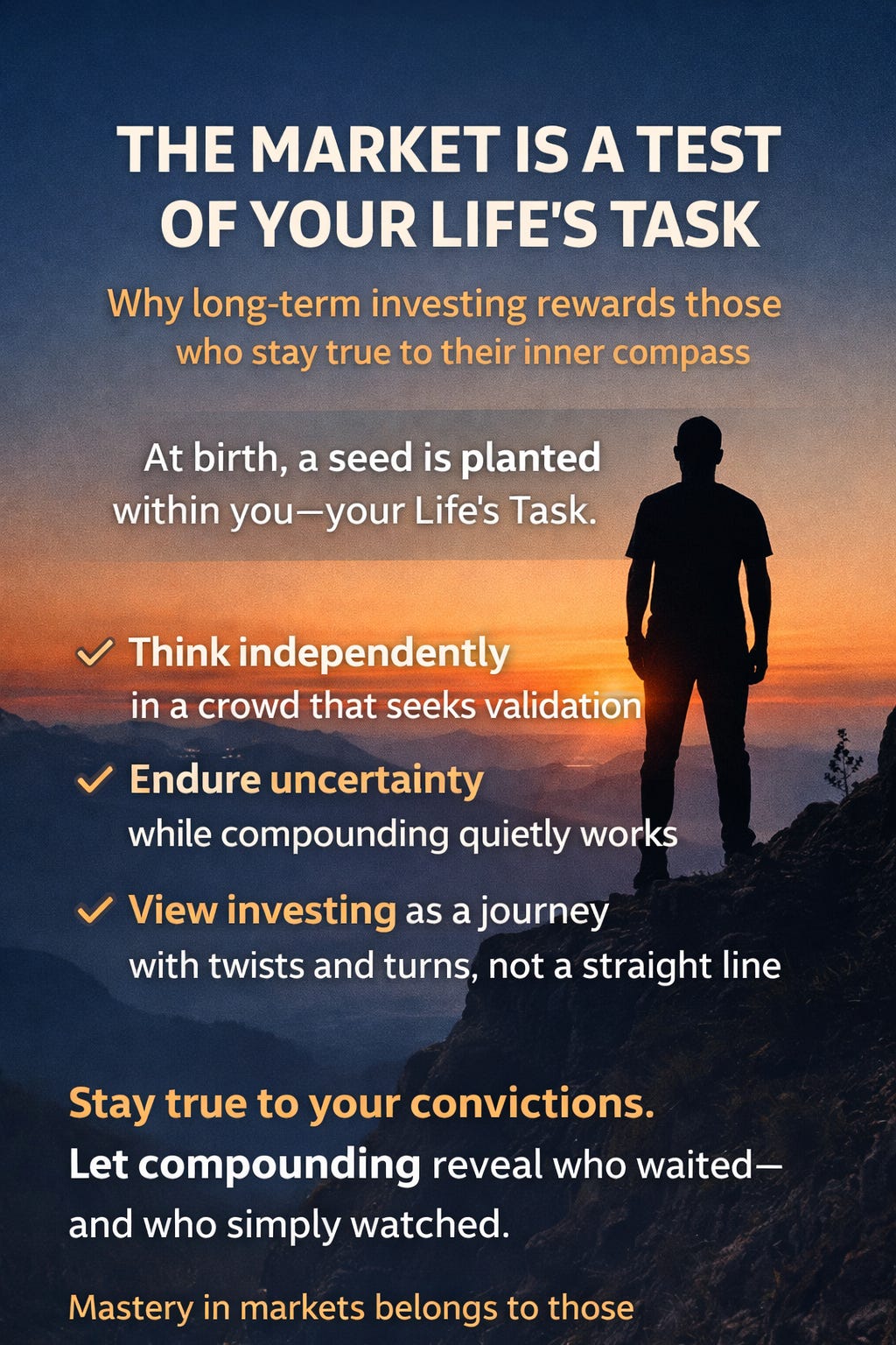Long-term investing is not just about numbers—it is about remaining connected to your core belief. Your investment philosophy is your vocation. It demands discipline, silence, and the courage to stay invested when others chase comfort.